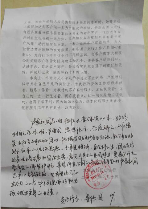襄陽戎安保安公司感謝襄陽農(nóng)商銀行團(tuán)山支行的大力贊美!